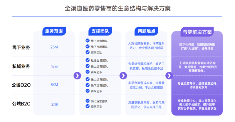 携手平台、工业、及专业伙伴,以运营及信息技术广泛链接并支持医药零售终端,高效地为新时代消费者提供便捷、专业、有效的药学商品与服务。
