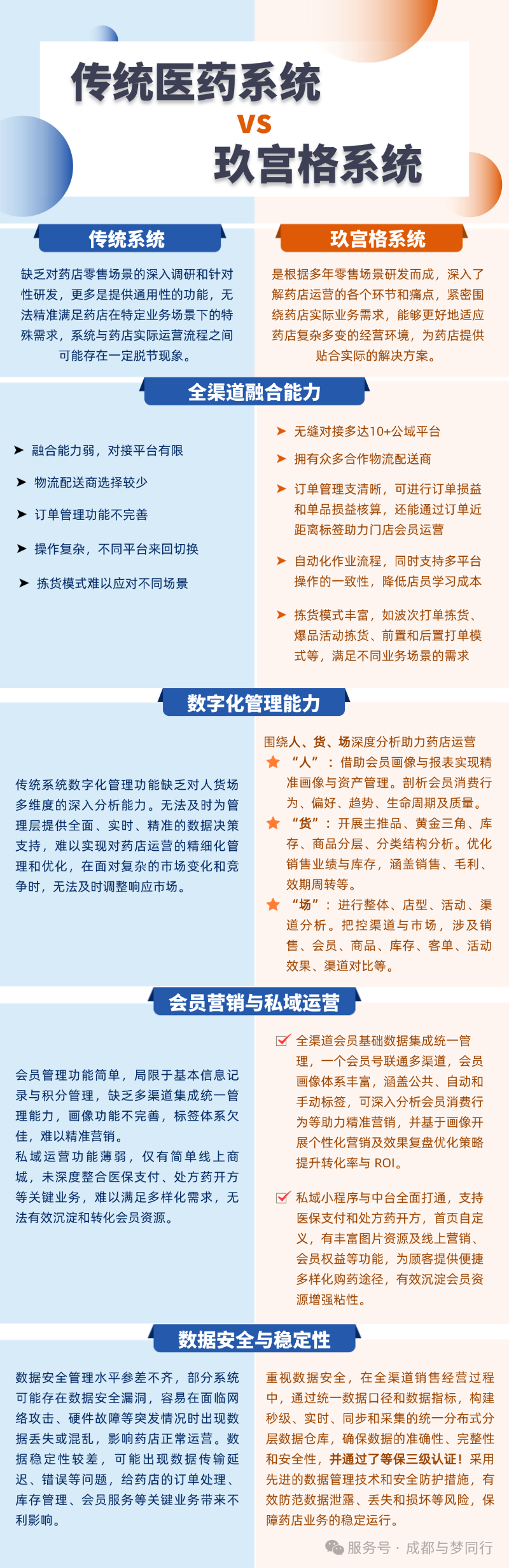 一套稳定的数字化系统对于药店的运营效率、服务质量和市场竞争力至关重要。玖宫格系统作为一款专为零售药店打造的全渠道销售经营系统,与市面上普通系统相比,具有显著区别,尤其在全渠道融合、会员管理与营销、私域运营以及数字化管理和系统安全等方面表现突出。